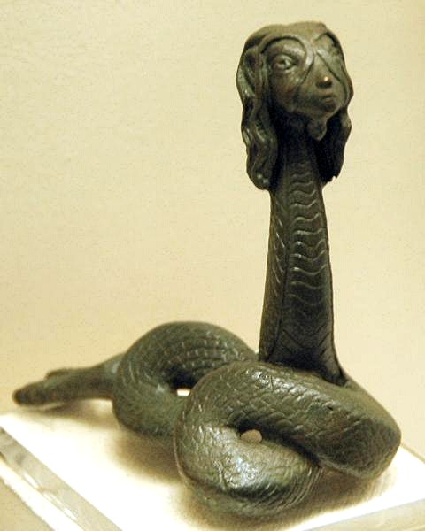 He stood before her, trembling slightly in anticipation as the cool evening breeze ruffled her dark hair until it seemed almost alive, flickering and entwining. The grass at her waist stirred - and as he looked down, the youth was horrified to see what appeared to be a huge serpent writhing where his lover’s feet must surely be standing.