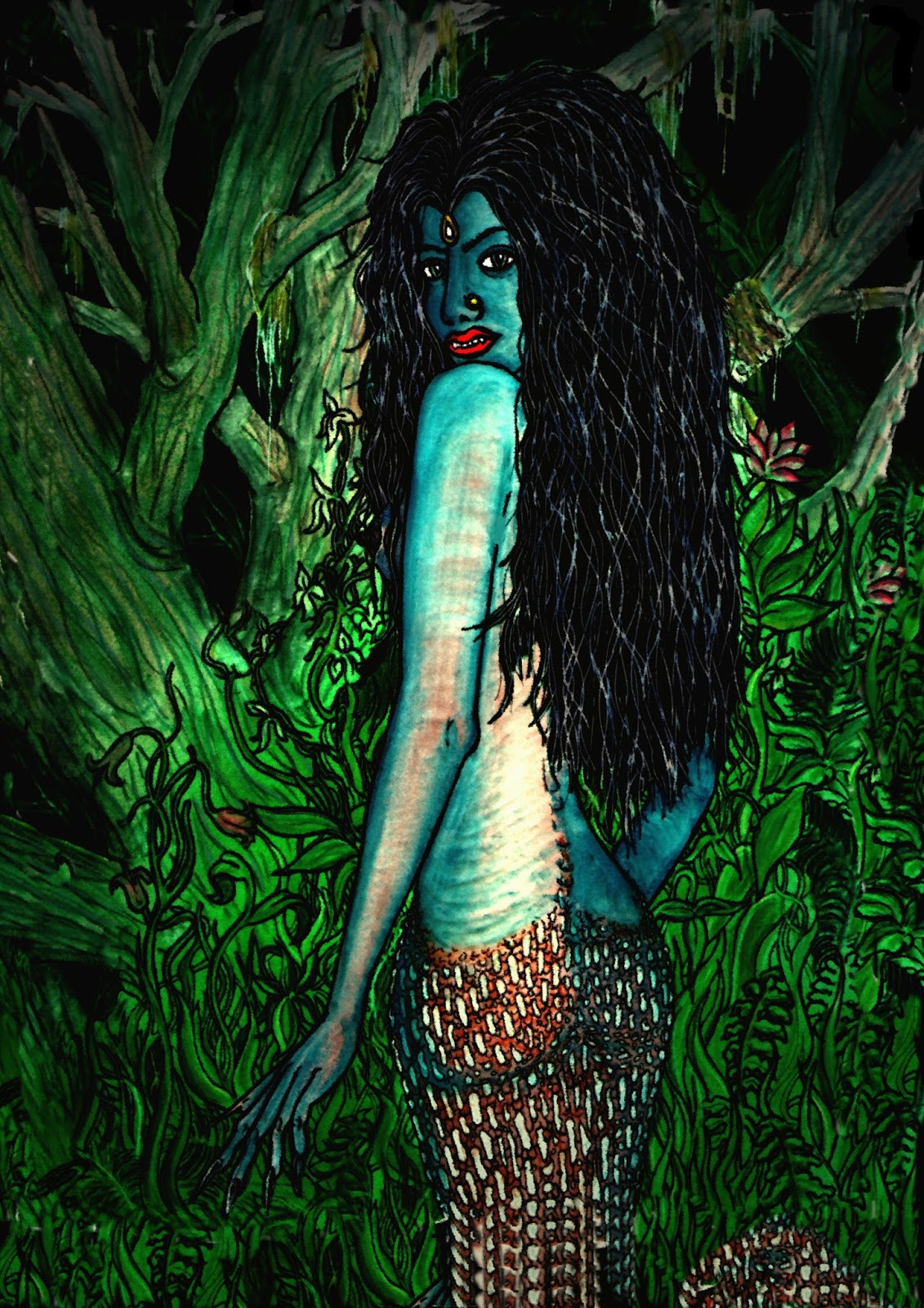 He closed his eyes once more, for the last time, and so was spared the ultimate horror of seeing his lover’s face transform into that of a human cobra, its hair flailing outward and coalescing into a dark expanded hood, as it leaned forward to sink its fangs into his throat. Once sustained, the naga hag drew back again, and the youth’s limp brittle shell, which had once known life but only an empty promise of love, dropped soundlessly to the ground, drained and dead, like the last rays of the setting sun that were sinking beneath the sable canopy of the jungle.