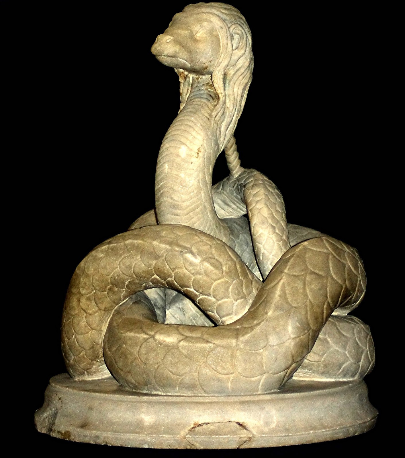 Moreover, we only have Lucian's very questionable testimony that Glycon actually talked at all! In fact, it is even possible that Lucian never actually saw Glycon or spoke to anyone who had done so, because, amazingly, his essay makes no mention whatsoever of Glycon's two most remarkable physical features – its human ears and blond hair. Conversely, whereas Lucian claimed that it possessed a human-like head, most of the physical depictions of Glycon currently known (i.e. the various coins and statues noted earlier by me in this article) actually portray it with a long-snouted head that is certainly more pythonesque than humanoid in appearance. If for no other reason than this, therefore, the authentic nature of the content of Lucian's essay clearly should not - can not - be taken in any way for granted.