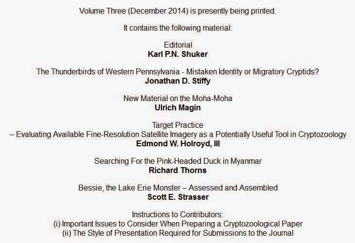 THE JOURNAL OF CRYPTOZOOLOGY, VOLUME 3 – A SNEAK PREVIEW