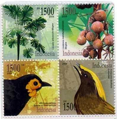 Wattled smoky honeyeater (bottom left) depicted on an Indonesian postage stamp in my collectionAnd now for a couple of not-so-false birds of paradise.