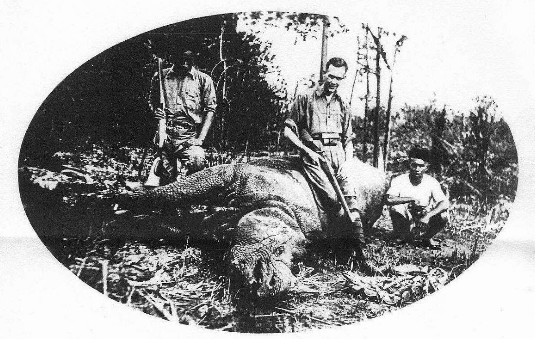 J.C. Hazewinkel posing on the carcase of the first in the series of Javan rhinoceroses shot by him in Sumatra(public domain)As Dr Vageler readily recognized, the Sumatran rhino thus became an unlikely candidate for the badak tanggiling’s identity. In his coverage of this episode, Willy Ley stated that Hazewinkel’s photos convinced Vageler that a second species of rhinoceros existed on Sumatra, and that in reply to his requests Vageler was promised living specimens of it to send on to various zoos worldwide, but they never arrived. Ley concluded his account by stating that the badak tanggilingtherefore remains a shadow in our zoological encyclopedias, but: “...it may, however, be rediscovered almost any day”.
