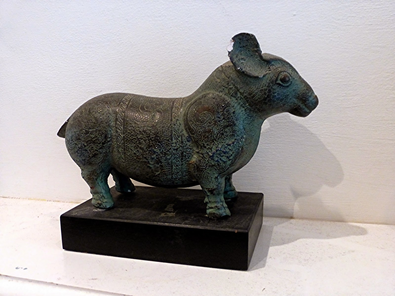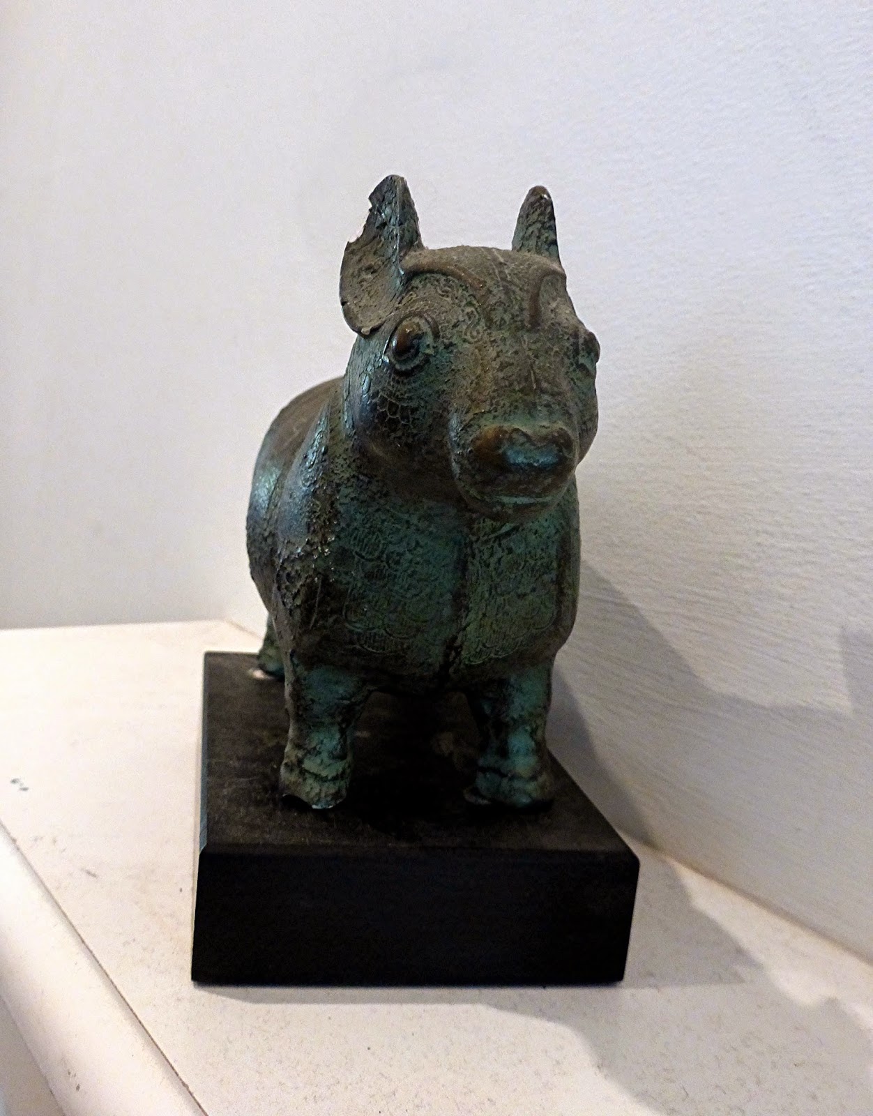 Front view of Christine's replica statuette (© Dr Christine Janis)Finally: While researching this fascinating subject, I discovered a beautiful life-sized replica of the Freer Gallery's bronze beast statuette on the website of an auction house called Invaluable. Produced by Alva Studios, the statuette was sold on 28 September 2013 for US$ 100, but its listing remains on the auction house's site (click here ). In addition to the description of the original statuette given in the Freer gallery, Invaluable's listing also includes the following details: