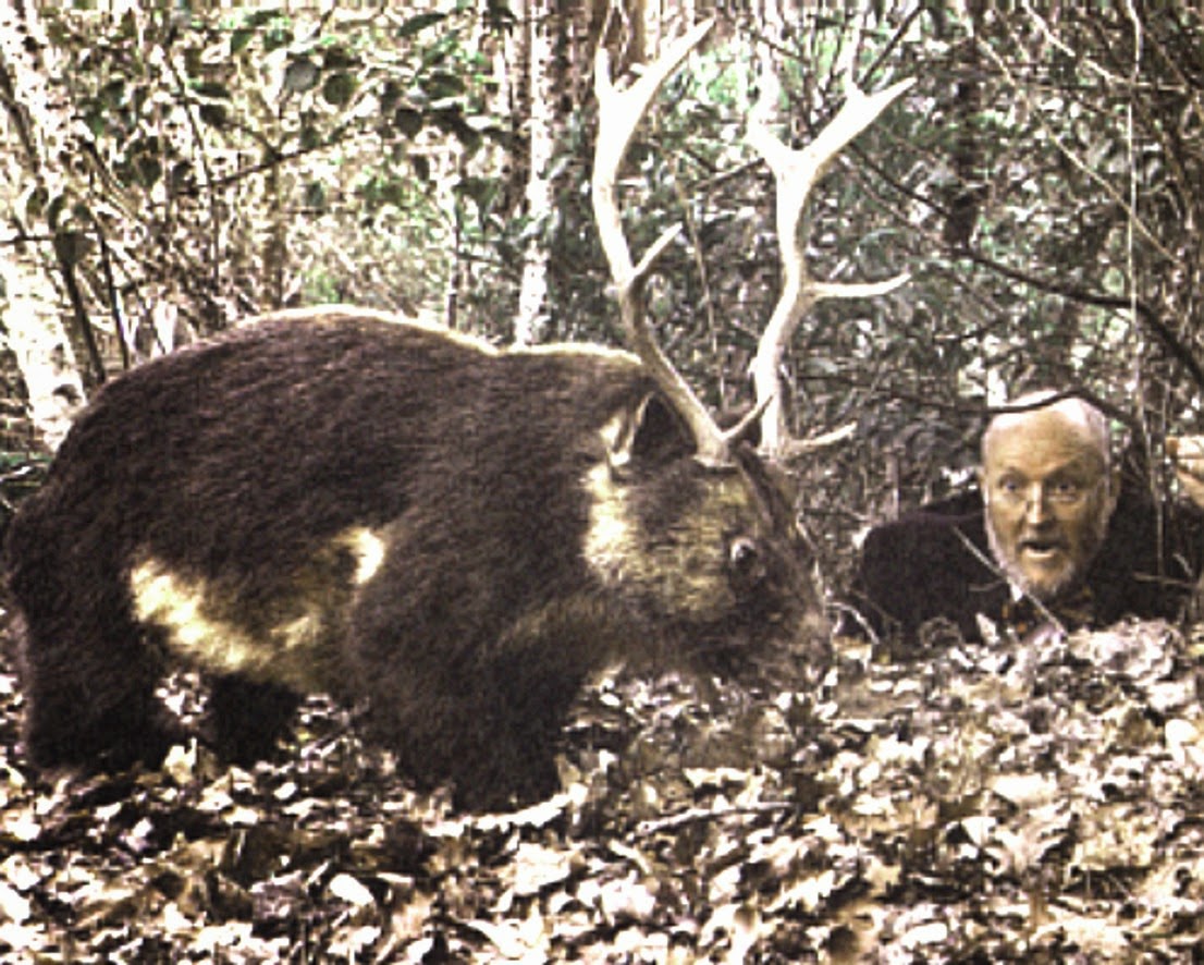 Artistic representation of the gunni in life (© Connor Lachmanec)Whereas North America has the jackalope, Australia boasts the gunni – an eyecatching marsupial equivalent, consisting of a wombat sporting a showy pair of antlers. To date, however, only one example has been procured – the handsome taxiderm specimen, complete with striped back and hindquarters, plus a distinct tail, formerly on display in the visitors’ information centre at the tourist town of Marysville in Victoria. It was presented to the centre by local ranger Miles Stewart-Howie, together with a detailed account of this pseudo-species’ equally fictitious history, which was duly displayed alongside it.