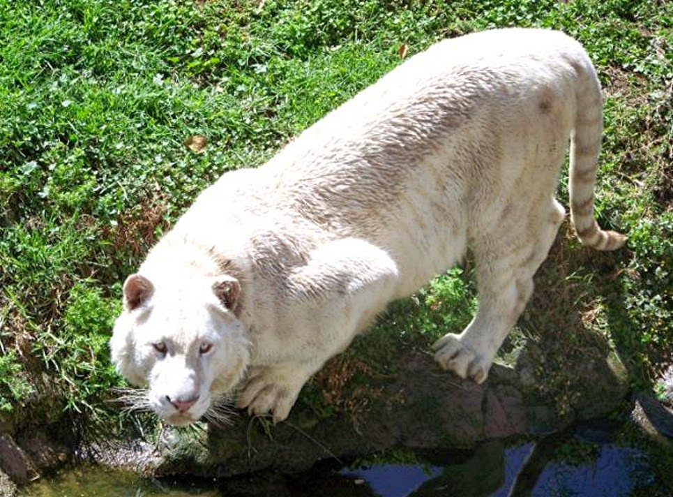 As recently as May 1994, in the Shennongjia region of China's northwestern Hubei Province, the article's author allegedly spied a giant cat measuring 4-5 m long (and therefore much larger than any normal tiger), with white fur bearing vertical yellow stripes. An extreme white-furred variant of the tiger, known as the snow tiger (click here for a detailed account), does possess only very pale, yellowish stripes (indeed, some specimens bear no or virtually no markings at all), but it does not measure 4-5 m long. Moreover, both the snow tiger variant and the more familiar white tiger variant with brown or dark grey/black stripes have only ever been recorded from the Bengal tiger P. tigris tigris, not from the South China subspecies or any other.