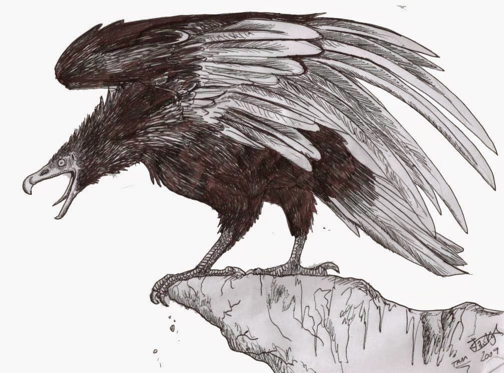 Sporting a colossal wingspan estimated at 23-24 ft, the giant Argentinian teratorn Argentavis magnificens; teratorns were huge prehistoric relatives of today's New World vultures, and some cryptozoologists believe that the thunderbirds of Amerindian mythology may be based upon late-surviving or even still-undiscovered present-day North American teratorns (© Justin Case aka Hodari Nundu/Deviantart.com)Let us hope, therefore, that someone will be able to persuade Jameson to submit his giant mystery feather for formal DNA testing - always assuming of course that it really is a feather...