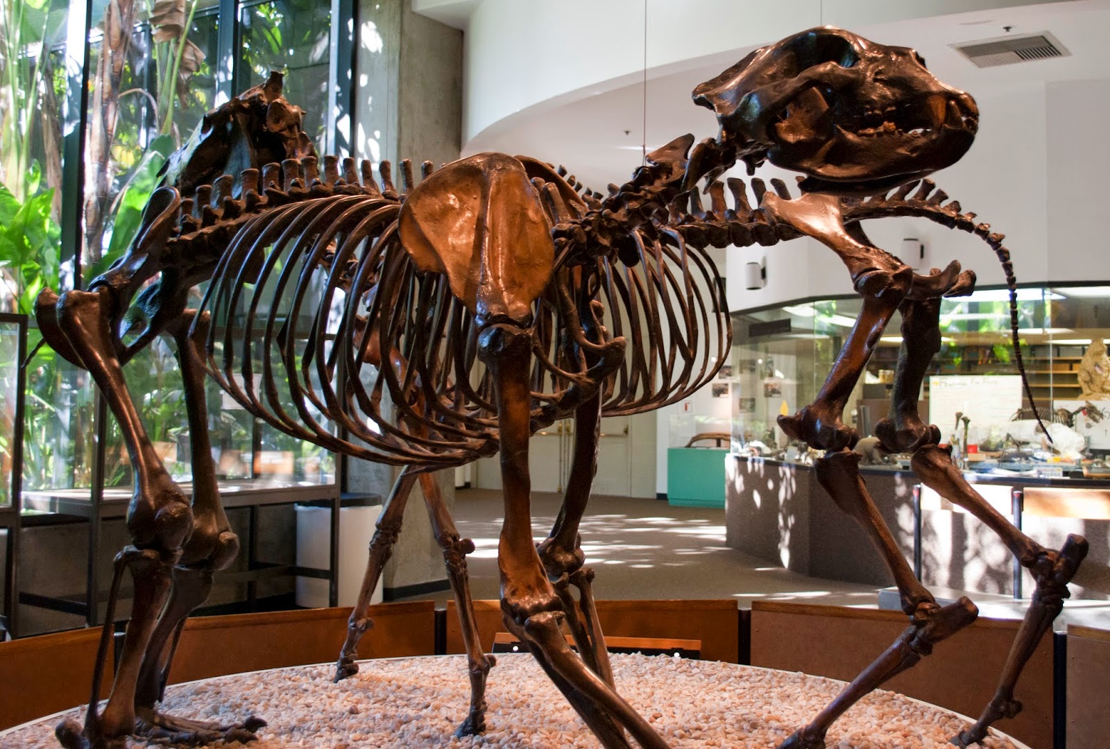 Skeleton of Arctodus simus from California's famous La Breatar pits (© Riku64/Wikipedia)Interestingly, certain findings show that even in North America the short-faced bear survived to a more recent date than traditionally believed. In March 1992, Utah palaeontologists Drs David D. Gillette and David B. Madsen documented their excavation four years earlier at central Utah's Huntington Reservoir of a partial cranium and isolated rib belonging to a short-faced bear that dated less than 11,400 BP (Before Present day) - i.e. over a thousand years more recent than the previous record for the youngest remains of this species. Moreover, they speculate that relict populations may have persisted until 10,000 years BP, or even later - beyond the Pleistocene, into historic times.