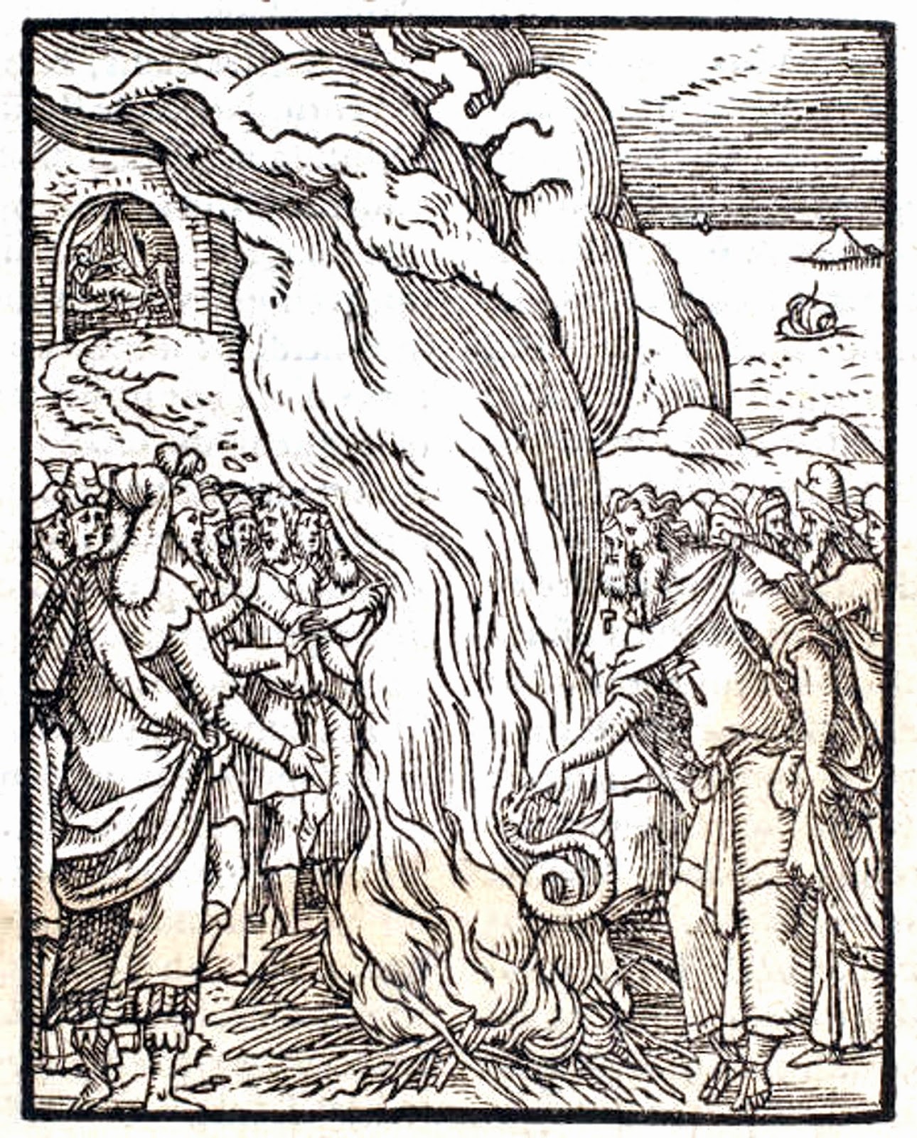 St Paul casts viper into fire, painting by Marten de VosIt is recorded in the Acts of the Apostles (28: 3-6) within the Bible's New Testament that when a ship transporting St Paul and other prisoners to Rome was shipwrecked on the island of Melita (known now as Malta), St Paul was bitten by a viper: