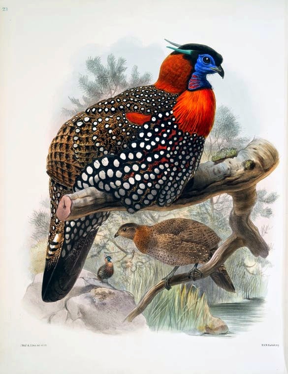 Western tragopan (male in foreground) painted by D.J. Elliot in 1872Mystery birds have always fascinated me, especially as they tend to attract much less cryptozoological attention than mammalian or reptilian cryptids (a very unfair situation, at least in my opinion), and the following example is no exception, being both very intriguing and exceedingly obscure.
