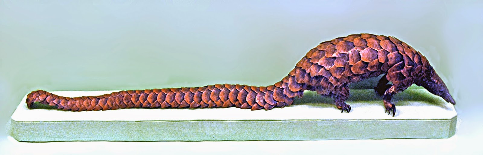 A taxiderm specimen of the aptly-named long-tailed pangolin (© Hectonichus/Wikipedia)To be fair, however, anyone not familiar with pangolins might well consider them reptilian based upon their scaly outward appearance, and their surprise at suddenly seeing such an exotic-looking animal might well lead them to exaggerate its size and distort its form when recalled at a later time - unless of course there really is an unknown, giant variety of pangolin existing incognito within the jungles of Malaysia…??