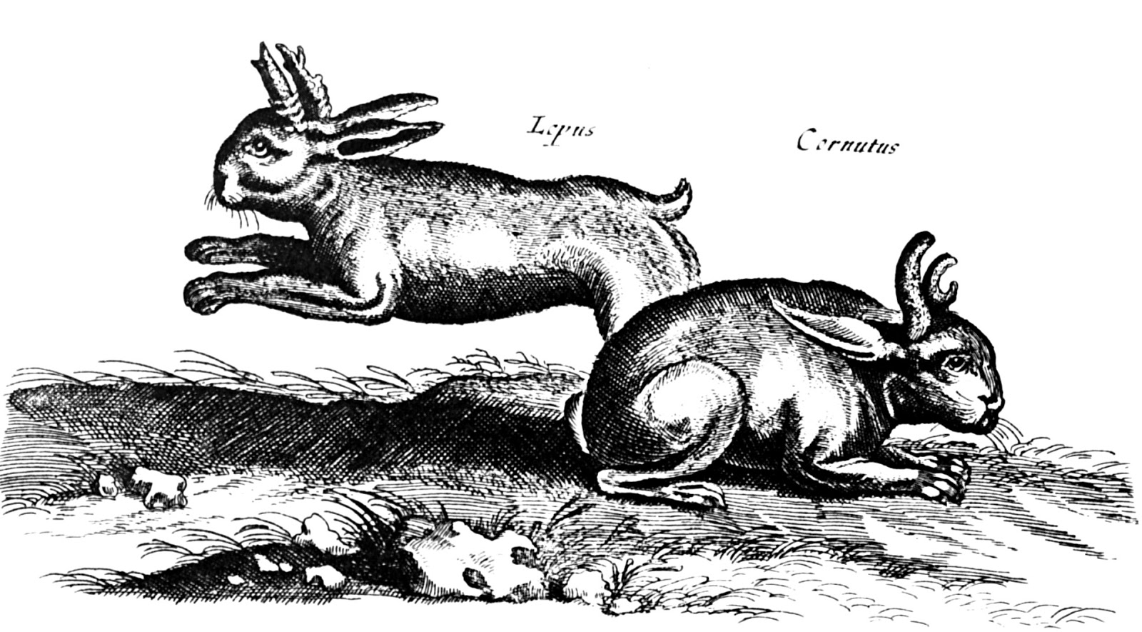 It is easy to see how, centuries ago in pre-scientific times, if someone encountered a rabbit or hare in Eurasia or North America suffering from one of these viruses and bearing various horn-like growths on its head or face, belief in the existence of a rare, exotic species of horned hare or jackalope could swiftly develop. And as microbiological knowledge was at best inaccurate and at worst non-existent in those bygone ages, even naturalists might readily have been fooled into assuming that such horns were natural structures rather than the physical effects of a viral infection. Coupling this with the all-too-frequently exaggerated and distorted illustrations of animals present in bestiaries back then, and suddenly a hare with horns, or even a rabbit with antlers, is no longer so surprising and implausible a creature after all.