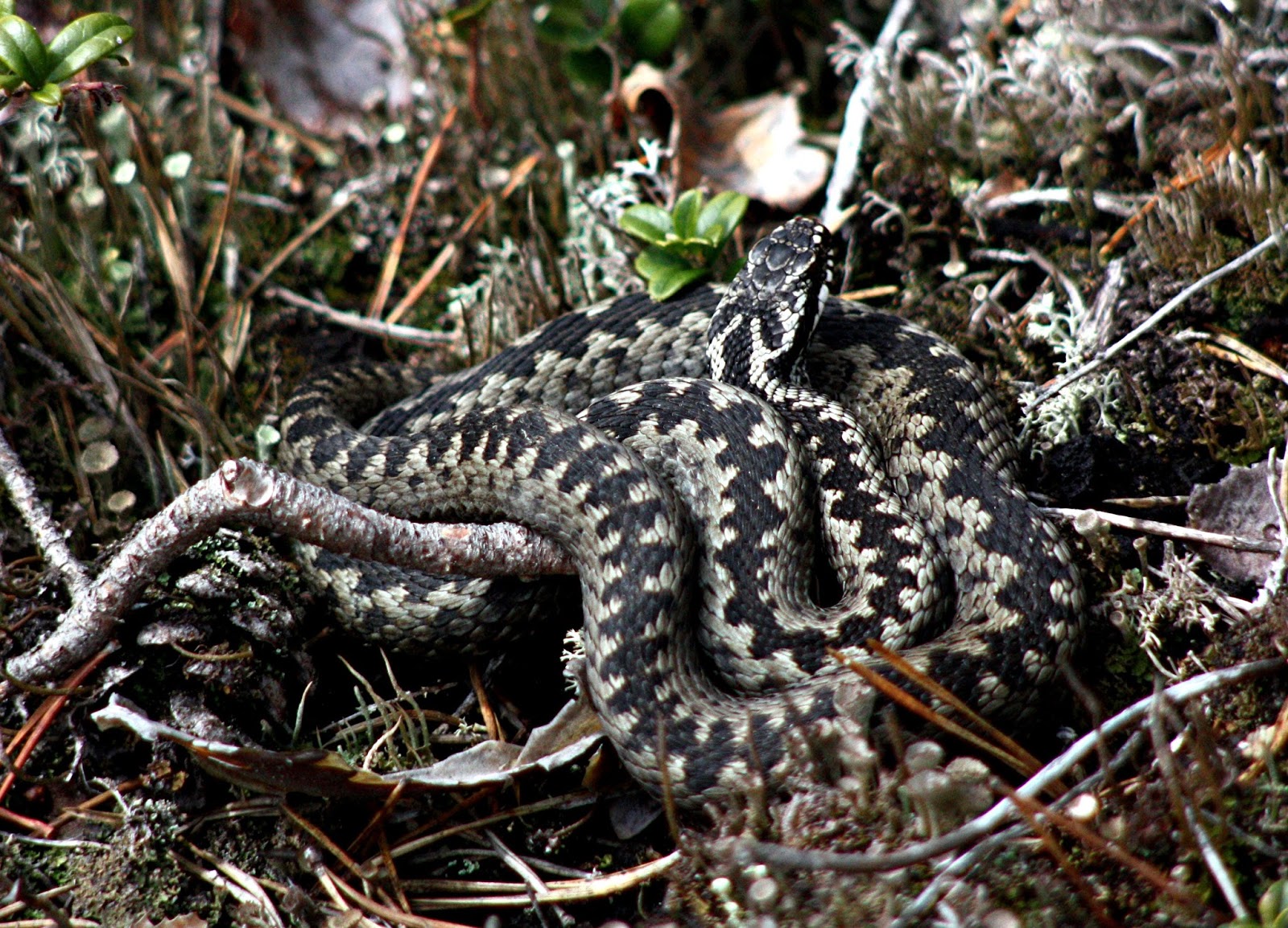 A normal grey-coloured male adderIt is not as if a scarlet viper would be such an unlikely, improbable herpetological entity. There is a genetically-inherited condition analogous to albinism and melanism that is known as erythrism, and individuals exhibiting it are abnormally red in colour. Erythristic iguanas, for instance, are bright orange-red instead of their normal green shade. Consequently, an erythristic common adder would make a very plausible scarlet viper. And as such colour morphs are often of only localised distribution due to genetic drift, this would also explain the scarlet viper's limited occurrence.