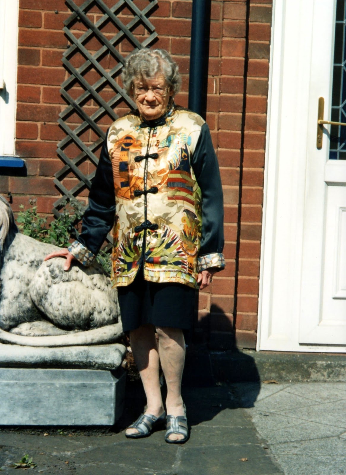 Mom wearing her much-loved Egyptian-themed jacket from Las Vegas (Dr Karl Shuker)