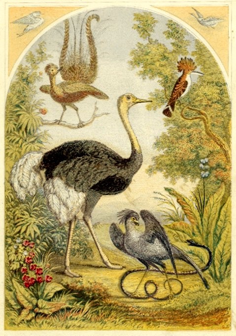 Beautiful antiquarian colour engraving of various avifauna, including a secretary bird battling a snakeThis ShukerNature blog post is excerpted and updated from my book Extraordinary Animals Revisited (2007).