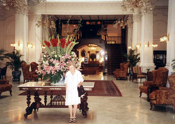 Mom at Raffles Hotel, where we stayed when visiting Singapore in 2006, thereby transforming into reality for her another of her lifelong dreams (Dr Karl Shuker)