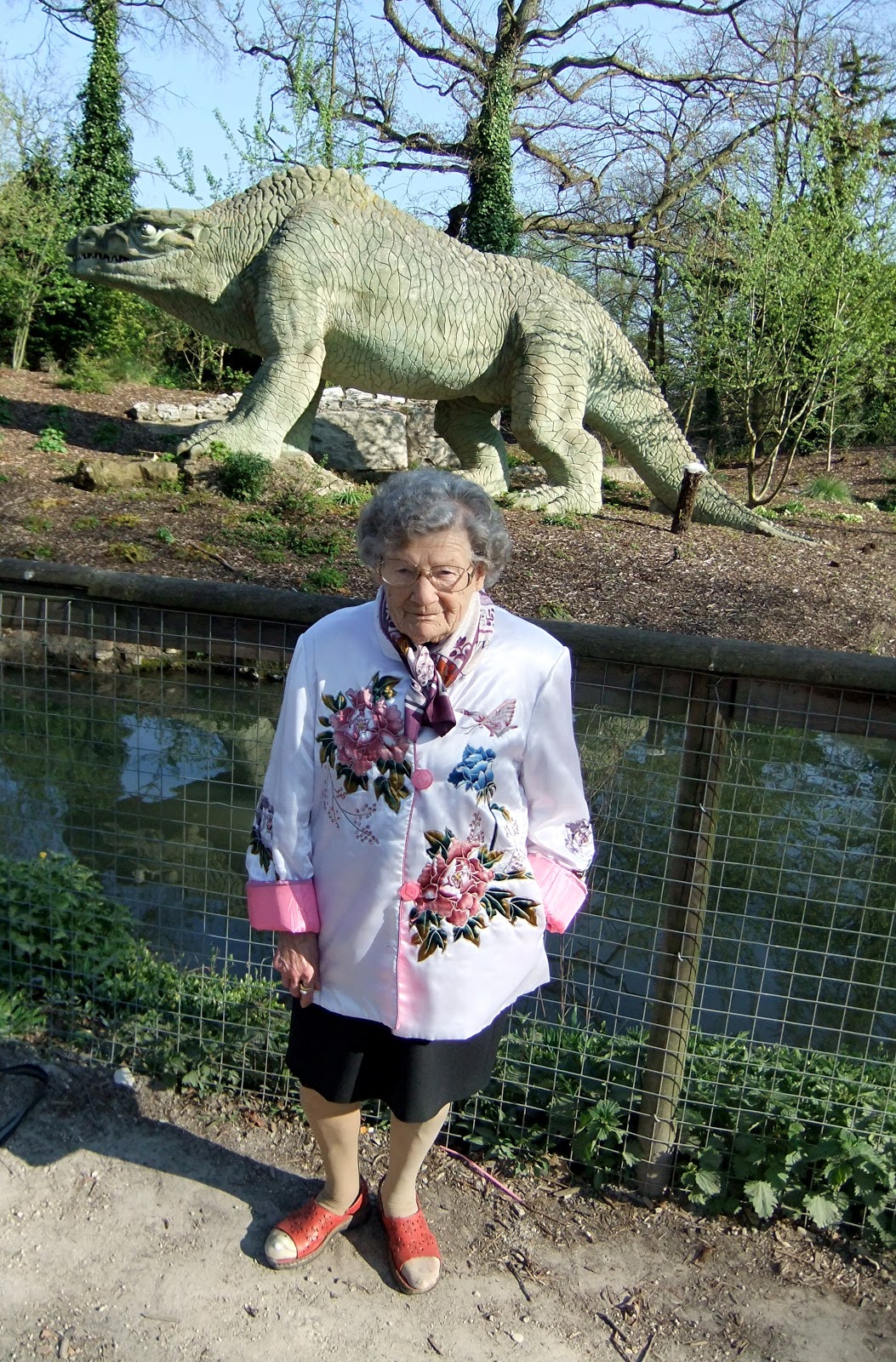 Mom and a Megalosaurus statue at Crystal Palace, London, 2010 (Dr Karl Shuker)