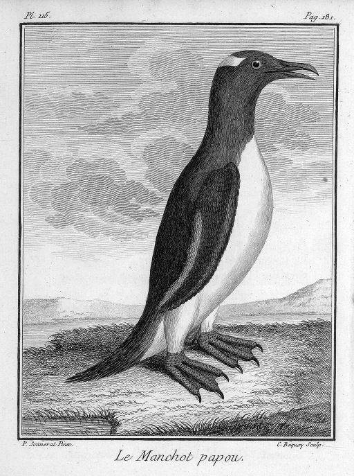 "I will mention the three Manchots [penguins] which I have observed, one the Manchot of New Guinea, another the Collared Manchot of New Guinea, and the third, the Manchot Papua."