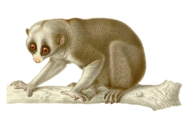 The Indian slow loris Nycticebus bengalensis, which only possesses a vestigial tail, depicted in a painting from 1867However, as clearly revealed in the photograph opening this present ShukerNature blog post, and which originally appeared in a short article by Dr N. Annandale, Superintendent of the Indian Museum, documenting them in the Proceedings of the Zoological Society of London for 17 November 1908, the remarkable loris form represented by these two briefly captive specimens differed dramatically from all other lorises in one very conspicuous way - it had a thick bushy tail! In stark contrast, the tail of all known species of slow loris is vestigial.
