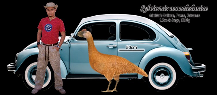 Comparing the dimensions of Sylviornis neocaledoniae to those of an average-sized human and automobile (http://palaeos-blog.blogspot.co.uk)Three years later, however, following further researches, Poplin changed his mind and announced that Sylviornis was actually an immense megapode (Comptes Rendus). Moreover, as he and co-worker Cécile Mourer-Chauviré discussed in another paper (Geobios, February 1985), there is an intriguing supplementary source of evidence favouring this identity, contained within the Houailou's mythology - for, according to their oral traditions, the du did not incubate its egg. Unfortunately, however, if we exclude from serious consideration their lizard-hatching legend, their folklore offers no clue as to the egg’s resulting fate.