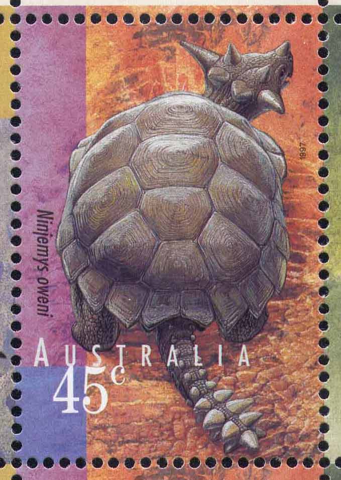 Ninjemys oweni - a small Meiolania-related Pleistocene horned tortoise from Queensland, depicted on an Australian postage stamp issued in 1997Without a body, preserved tissues, a photograph, or even an eyewitness drawing to examine, Tibet's hippoturtleox seems destined to remain an unclassifiable anomaly within the chronicles of cryptozoology – unless, one day, a second specimen appears. If it does, we can but hope that it will be treated more humanely than its mystifying species' previous representative.