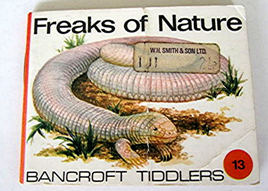 One 'Bancroft Tiddler' dealt with beetles (and I still own this today), others dealt with prehistoric animals, rare animals, tropical birds, etc. However, the one that I still recall most readily, #13 in the series, was entitled Freaks of Nature, and the reason why it made such an impression upon me was its front cover picture - which featured one of the most extraordinary creatures that I had ever seen.