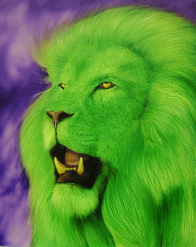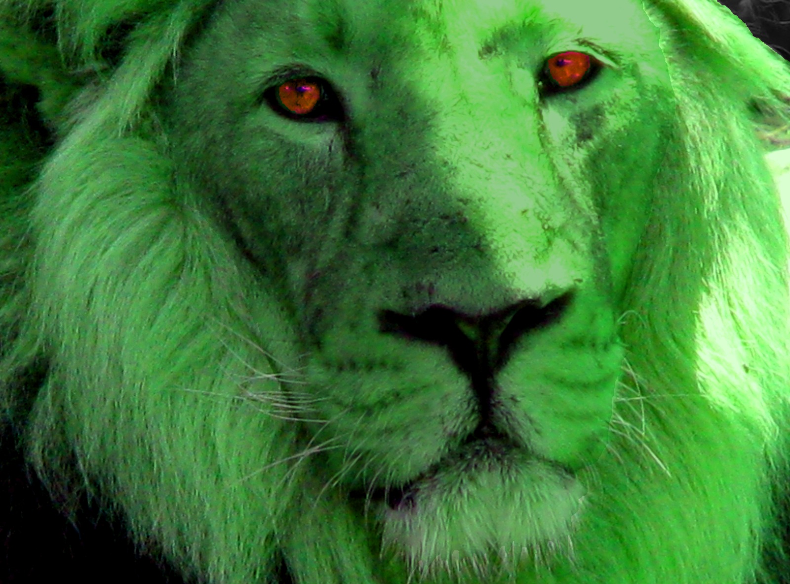 A green lion(Public domain image photomanipulated by Dr Karl Shuker)