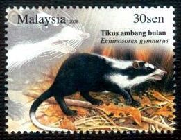 Moonrat postage stamp, Malaysia 2008 With a head and body length of 13-16 in, a tail of 8-12 in, and weighing up to 2.75 lb, the moonrat looks very like a gigantic rat - a rat wearing a black mask, and as big as a domestic cat! (In Borneo, moonrats lack the mask because here, uniquely, they are predominantly white all over in colour.) It even occupies a similar ecological niche to true rats. Taxonomically, however, this deceptive animal is something very different, because its closest relatives are not the rodents but the hedgehogs.