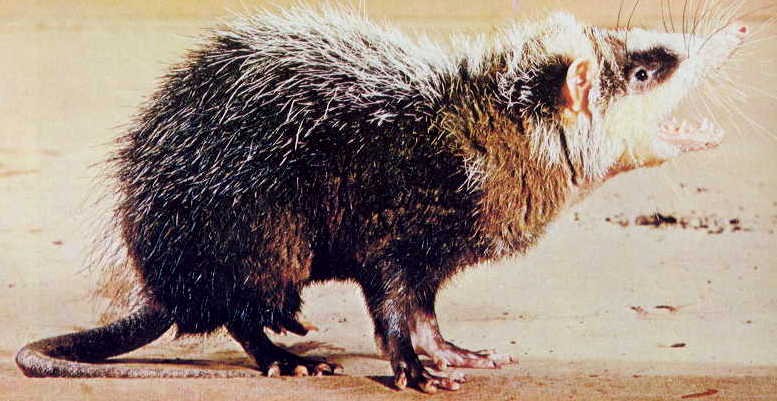 Sadly, I soon discovered that in spite of its exotic appellation, this wonderful creature, known scientifically as Echinosorex gymnura, does not actually come from the moon, but it is such an amazing-looking animal that anybody could be forgiven for wondering whether it may do! In fact, the marvellous moonrat is from southeastern Asia (specifically the Thai-Malay Peninsula and the islands of Sumatra and Borneo), and it is also called a gymnure ('naked tail'), because its very long slender tail is almost hairless and is covered in scales, rather like a snake! Equally ophidian is the moonrat's loud, threatening hiss that it gives voice to if confronted by predators or by other moonrats invading its territory.