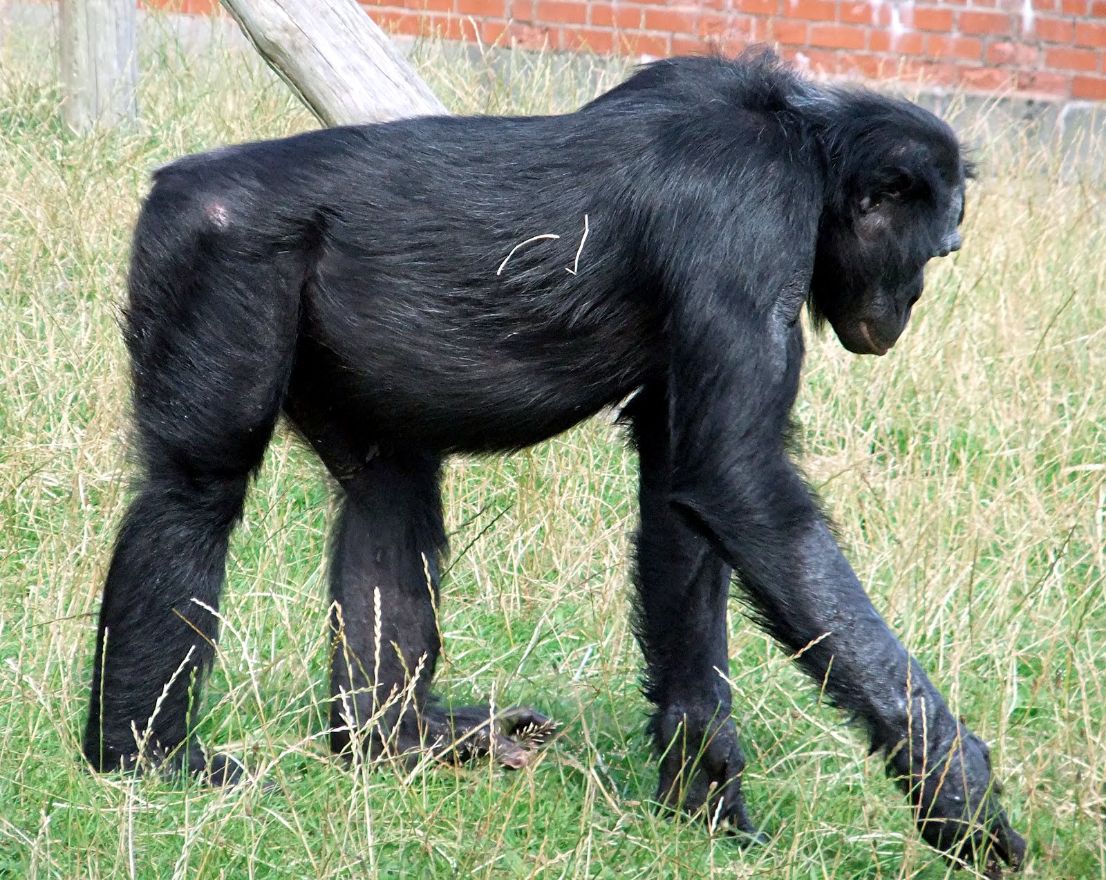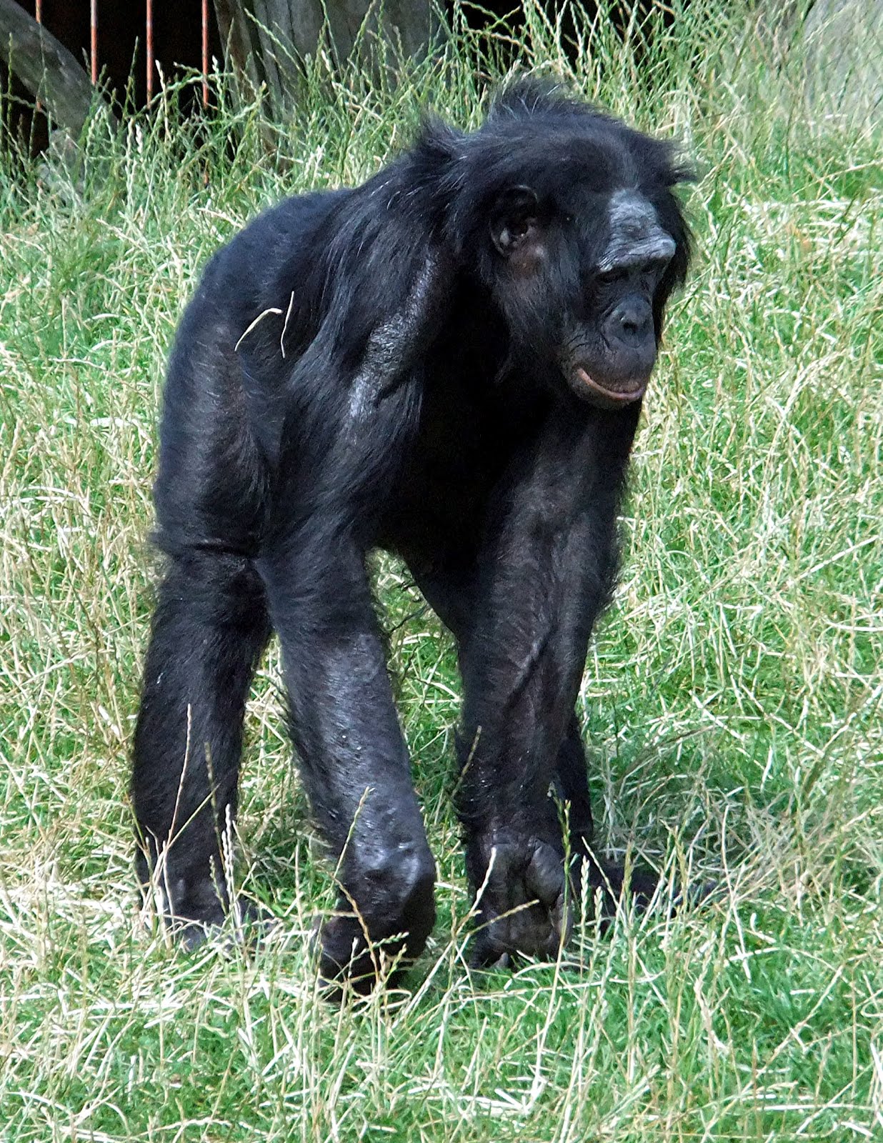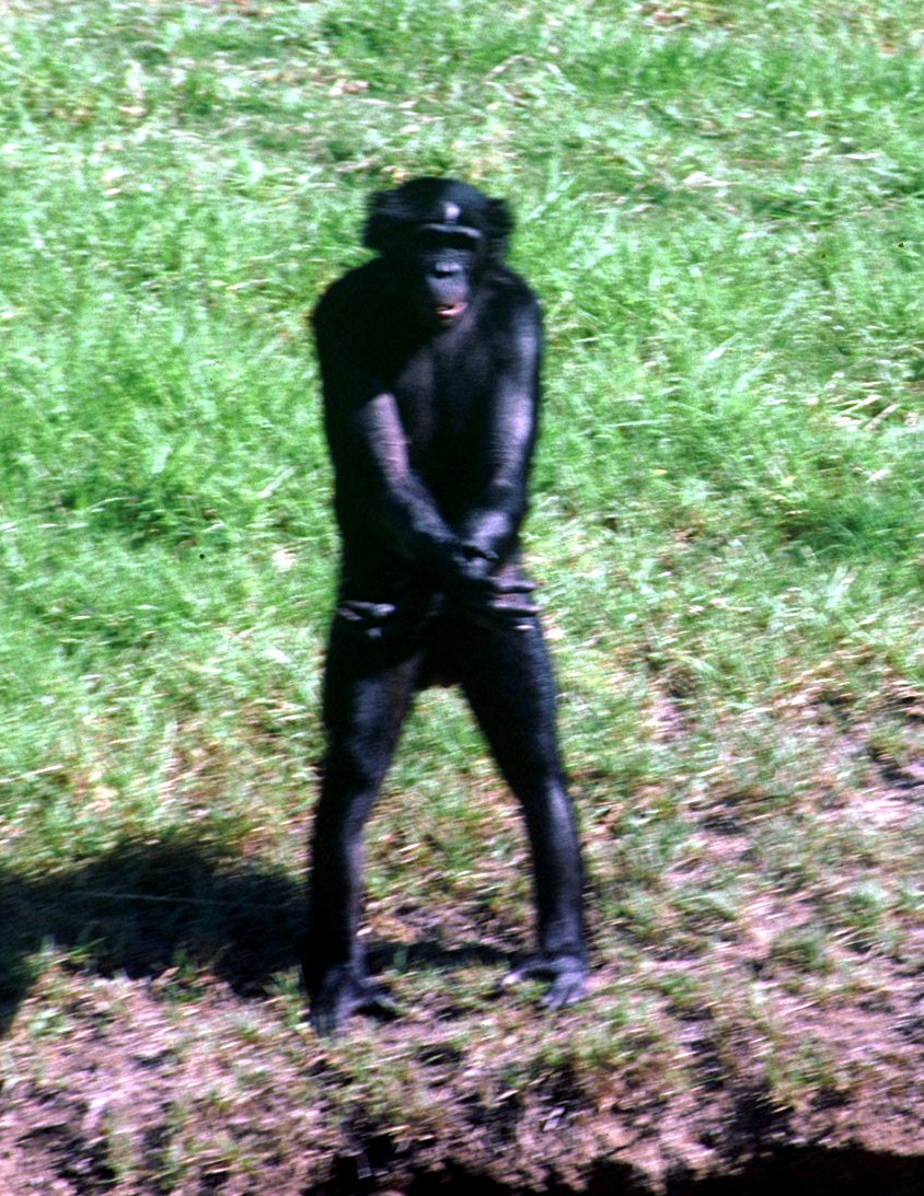Bonobos are able to stand upright on their hind legs and are adept at walking bipedally too (Alan Pringle)There has been a fair amount of controversy concerning the pygmy chimpanzee's precise taxonomic identity. Whereas some experts are so convinced of its distinct specific status that they have even placed it within its own genus, as Bonobo paniscus (bonobo is its native name), certain others still prefer to treat it merely as a subspecies of the common chimpanzee. Recent biochemical and genetic comparisons between common and pygmy chimps, however, indicate that the latter ape is certainly sufficiently distinct to justify classification as a separate species (though whether separate generic status for it is warranted is still a matter for conjecture).