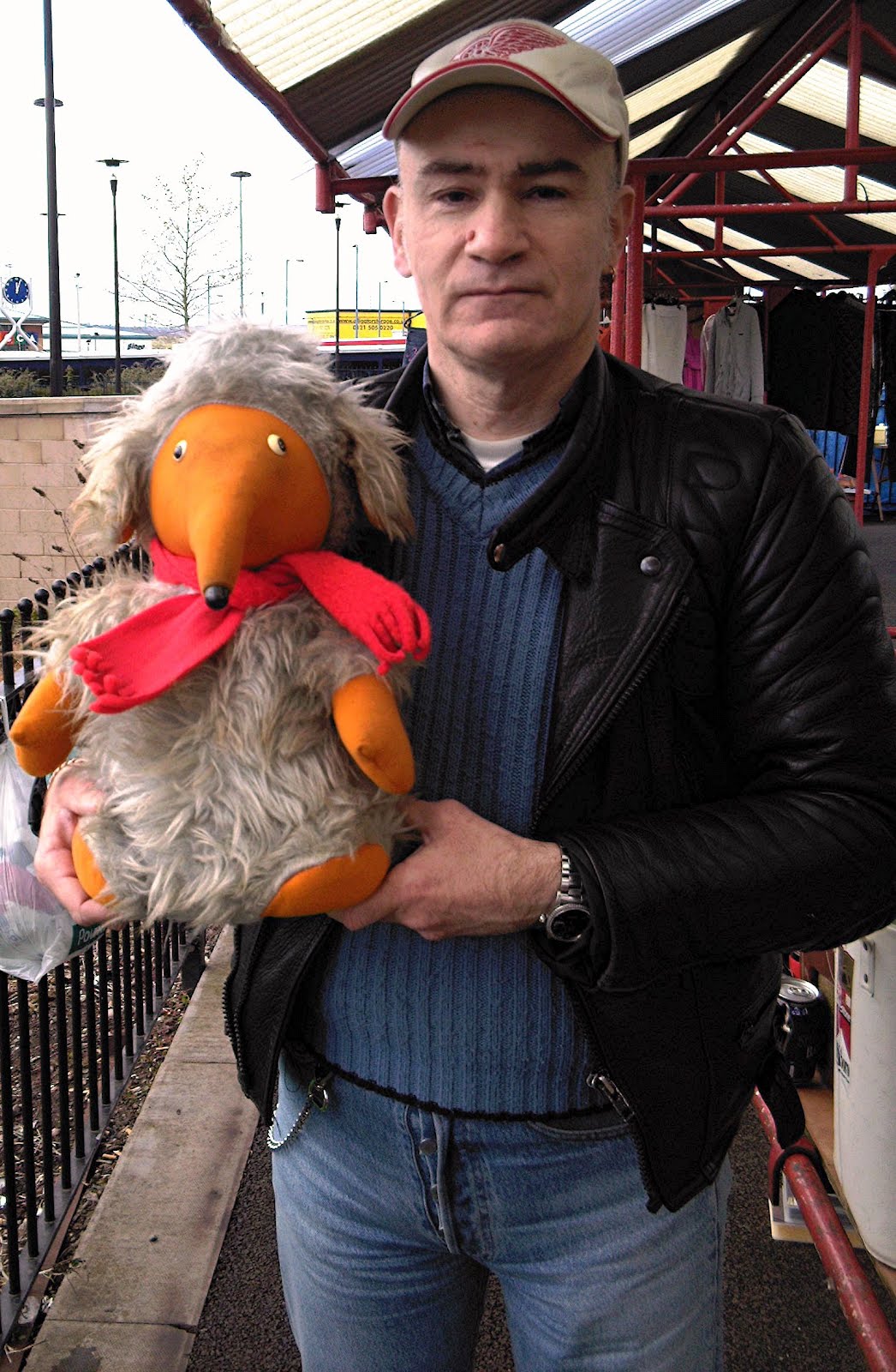 Earlier this year, I spotted a large-sized fluffy toy in the form of a womble on the stall of a friend, Wayne, at a local bric-a-brac market. Wayne had recently obtained it in a batch of items purchased in a house-clearance sale for reselling purposes, and although it had clearly been a much-loved womble in its time, it had evidently seen better days too, as its fur was somewhat bedraggled now. Consequently, I reluctantly declined the opportunity to add it to the Shuker menagerie. Nevertheless, Wayne kindly agreed to snap a photograph of me holding this womble (I think he's Orinoco), because, after all, in the weirdly wonderful world of cryptozoology, you don't know when such a picture may come in useful...well, you don't!