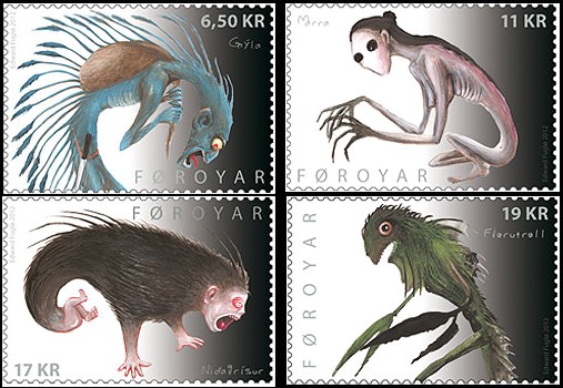 On 30 April 2012, the Faroes issued a set of four very distinctive stamps depicting a quartet of legendary entities endemic to their own land's ancient traditions.