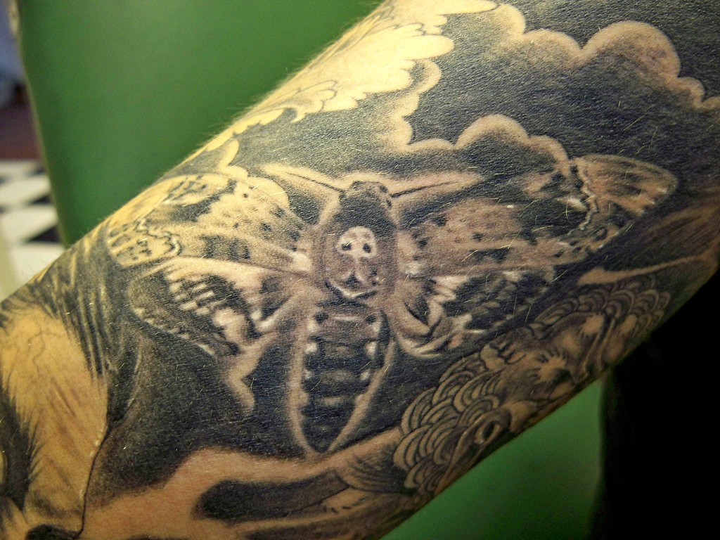 Spectacular tattoo of a deathshead hawk moth (Matt Gardiner/Flickr)If these tales were treated lightly, with the humour and contempt that their imaginative but baseless claims deserve, they would constitute nothing more than intriguing yet harmless additions to the annals of modern-day folklore. Tragically, however, for a very long time they have been accepted as truth so wholeheartedly by the credulous and ingenuous that this magnificent moth has been subjected to extensive, barbaric persecution - as revealed graphically by Rev. J.G. Wood's account in his Illustrated Natural History of an all too typical incident that he witnessed during the mid-19th Century: