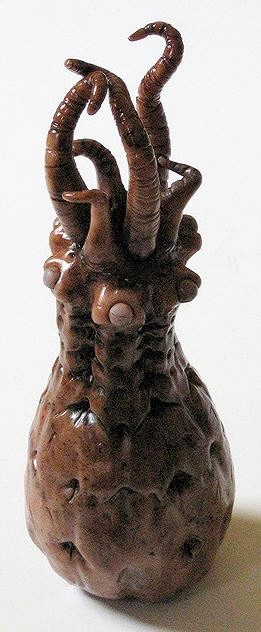 Sand CreatureAs for Baby: well, it has certainly never been more true that only a mother could love it! Armed with Andrew's customary abundance of tentacles, a jutting lower jaw brimming with teeth, and a long tail, this globular grotesque is definitely NOT pretty in pink (but readily emphasises the sick in cyclamen), and calls to mind a cryptozoological Eraserhead. In fact, Baby was indeed designed by Andrew specifically for a horror film, but sadly the film was never completed.