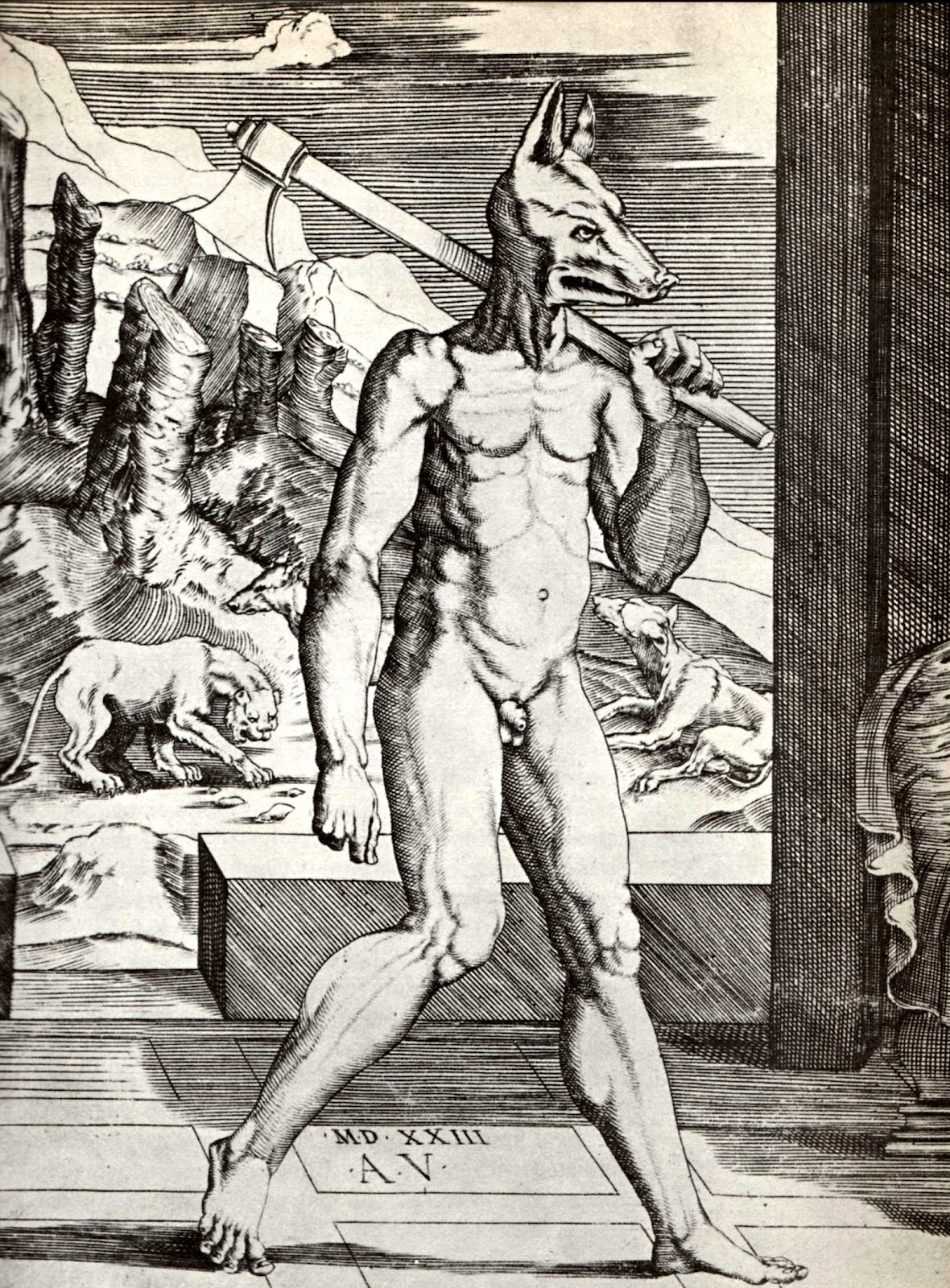 King Lycaon, portrayed in this 16th-Century copperplate engraving by Italian artist Agostino de' Musi as a ferocious wolf-headed man comparable to the entity reported by Andrew WarrenAs documented in Werewolves (1933) by the Reverend Montague Summers, an authority on such entities, the second of the two bloodcurdling episodes to be considered here occurred in summer 1888, and featured a professor from Oxford who had rented a holiday cottage in a mountainous area of Merionethshire, Wales. During his stay there, the professor decided to go fishing one day in a local lake, and while doing so he hooked an unusual object that proved to be the skull of an extremely large dog-like beast. Curious to discover more about his unusual catch, he took the skull back to the cottage, but left it in the kitchen when he went out for the evening with a friend, leaving his wife alone in the cottage.