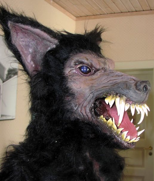 What big teeth you have! (Richard Svensson)Even more worrying, however, is this case's profound similarity to the earlier one, documented by O'Donnell. In both histories, a large canine skull (one in isolation, the other attached to a human skeleton) is found in a lake (one still containing water, the other dried up), brought back to the finder's residence, and left there in the kitchen during the evening with only a single person in the house. This person is duly confronted at the kitchen window by a terrifying face and hand(s) - presumably a living representative of the skull's species (described in near-identical manner within the two histories) searching for it. Although the entity is ultimately frustrated, it has elicited sufficient fear for the skull's finder to return the skull to its place of discovery, after which the entity is not seen again.