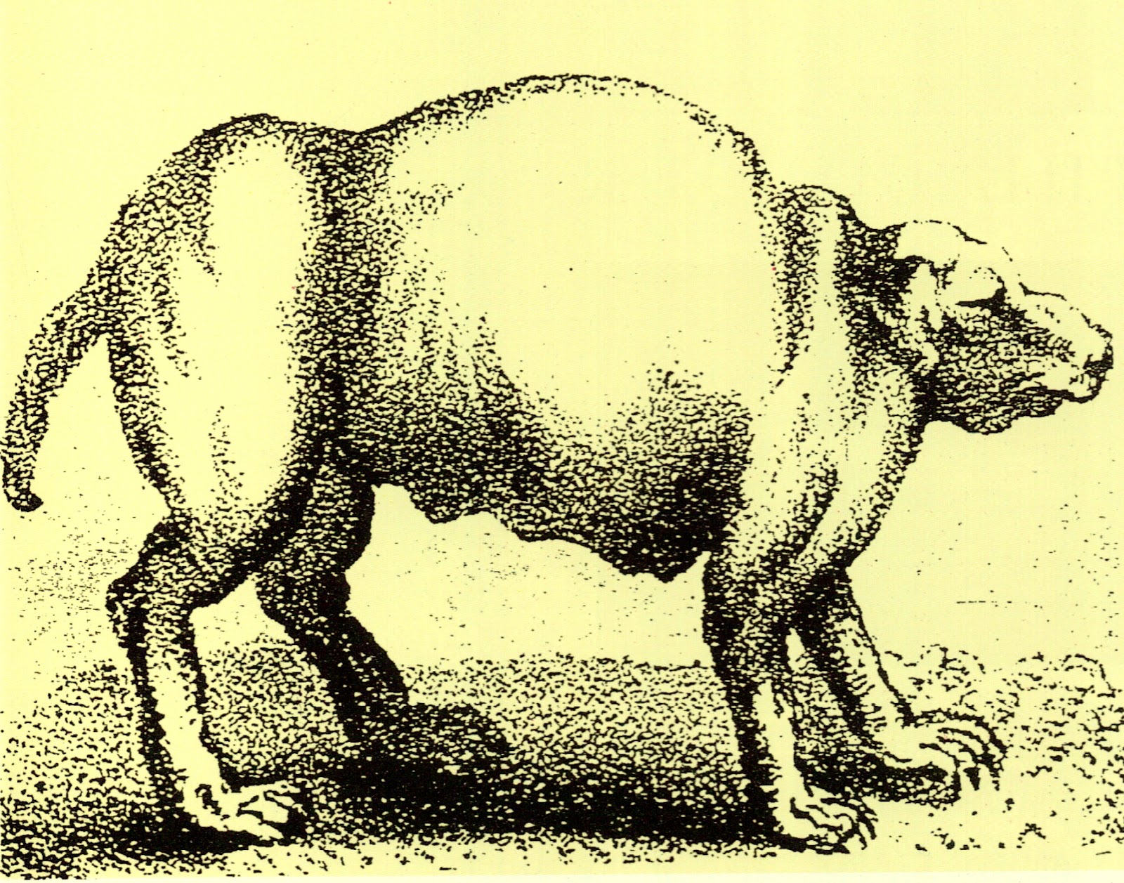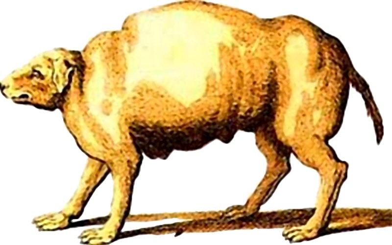 This bizarre beast first came to attention in 1780, courtesy of a tome entitled Historia Antigua de Mexico ('Mexico's Ancient History'), penned by Jesuit priest Father Francisco Javier Clavijero, a highly respected New World scholar. Inhabiting the Tarascan region of Michoacán in western Mexico, the izcuintlipotzotli was the size of a maltese terrier, with a small, wolf-like head, extremely short neck, lumpy muzzle, and small pendant ears. Strangely, its forelimbs were notably shorter than the hindlimbs, its skin was mottled with black, brown, and white spots, and - most striking of all - a grotesque hump (but possibly fatty rather than bony in composition) extended the entire length of its back, from its shoulders to its haunches. Indeed, part of its name, 'potzotli', translates as 'hunchback'.