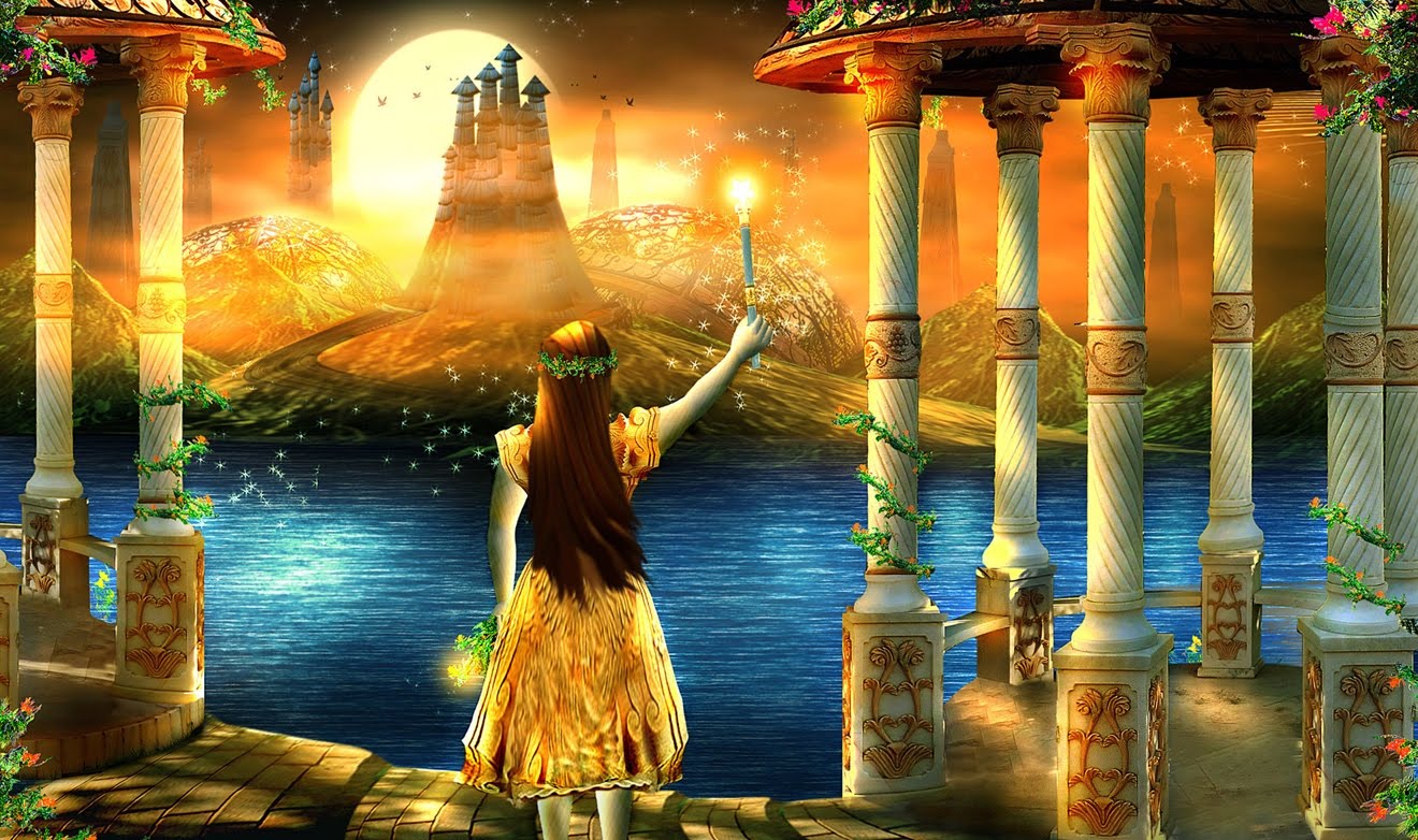 Soon they reached the Amazon’s edge, and although it was fairly early in the evening, the sun was beginning to set, casting fiery rays down upon the water until it gleamed like a river of burnished, liquid gold instead. Standing together at the waterside, the stranger told Maria that he came from a city further along the river, and would very much like to show it to her. Would she come with him and visit it? His glowing green eyes stared earnestly into hers as he asked her, and, without a moment’s hesitation, Maria nodded her agreement. But how were they to reach his city?