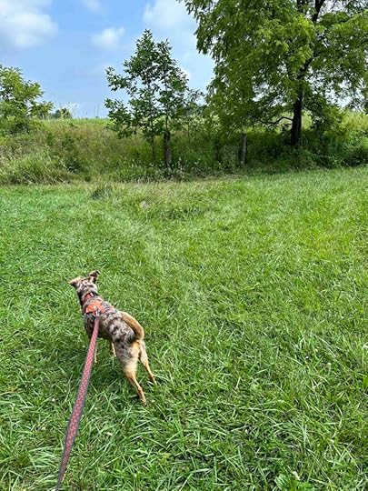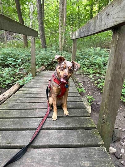 After our normal morning walks I drove Sunny to Bicentennial Woods in Huntertown, IN. On the way I told her all about Karlie and what a special girl she was. We talked about her love of chasing tennis balls, kayaking, and hiking in the woods, how she kissed the back of my neck if Art and Anna got too far ahead of us when kayaking, how resilient she was, how her sister Anna loved and protected her, and what a great best friend she was. I told Sunny that all the adventures she goes on are courtesy of Karlie.