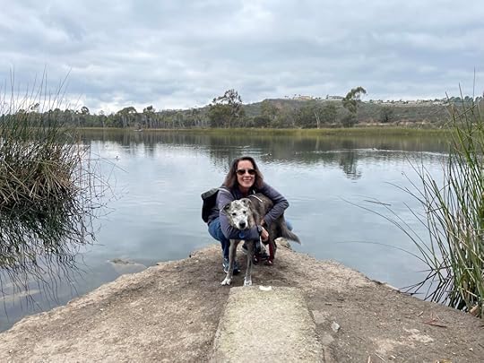 One last time on the rock into the water.I took one last hike around the reservoir before we left San Diego in April 2022. Sadly on that walk Karlie was with me only in spirit. I carried her collar in the backpack that I took on every one of our adventures. I retraced our steps from our first visit and turned around at the half way point. At first I couldn’t find “our rock” where we had taken so many pictures, but then I realized it was hidden under water. We had received quite a bit of rain and it had covered the rock. I was sad because I wanted one last picture on the rock. Instead I captured a picture of the water covering it. It was such a bittersweet hike, but I felt like Karlie was with me the whole way. We haven’t returned to San Diego or to the reservoir since that last trip, but I hope to take Sunny there the next time we are in San Diego and get a picture of her on “Karlie’s rock”.