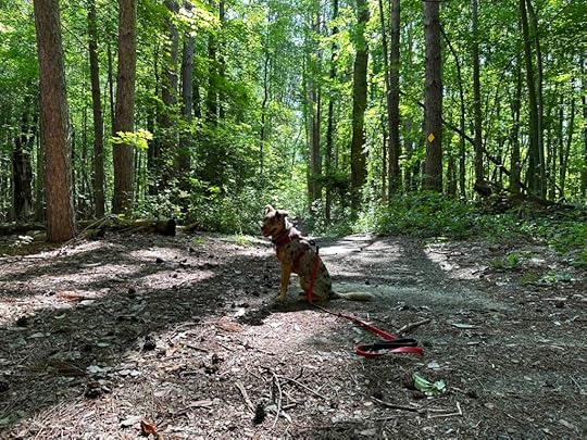 Sunny’s PerspectiveIt was a really long drive to get to this place, but once we got out of the car it was super fun. The smells were fantastic even on the bike trail. But once we entered the woods, I was in heaven! The trail is pretty narrow and I smelled horses, birds, squirrels, and all sorts of critters. The bike trail was fun too because there were quite a few bikes and people. I like this place and hope we come back again.