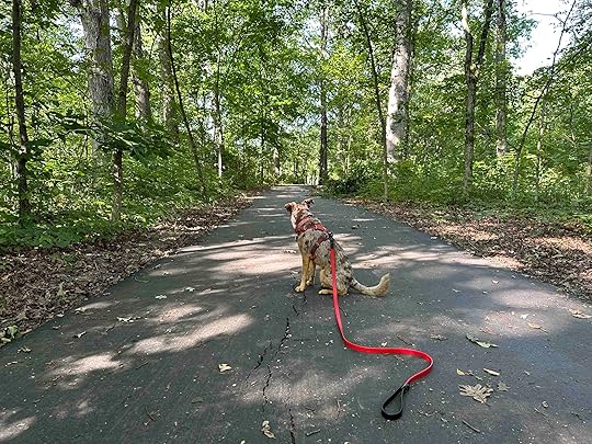 Sunny’s PerspectiveNormally I like dirt trails better than sidewalks or asphalt trails, but the Pufferbelly and Pumpkinvine trails are really cool. It’s like walking in the woods on sidewalks. The smells on the sides of both trails were really good. The Pufferbelly trail even had chipmunks and squirrels. Too bad I couldn’t chase them into the woods. There were quite a few bikes on the Pufferbelly Trails which is not my favorite part since I also couldn’t chase them. All in all these were fun excursions, but I’m ready to get back on the dirt trails in the woods.