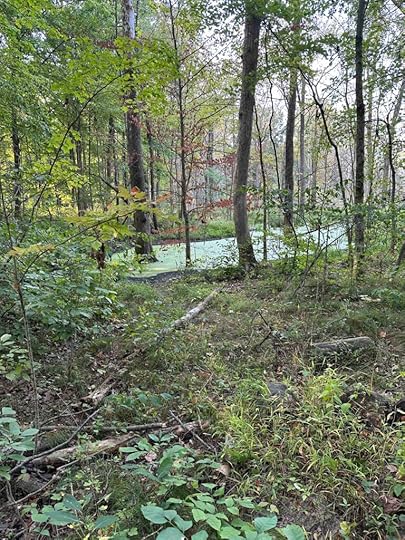 As we continued to hike we eventually came to an area leading into the woods with a sign indicating that hunting was allowed by permit only. Since there were no other cars in the parking lot we decided to continue on the trail. Thankfully we did not encounter any hunters. Although the Visit Steuben County website indicated that there were no trails through the woods, we found one to follow. It was not marked nor maintained, but we were able to follow it for a bit. The trail has some inclines and descents, but nothing very difficult. Despite that the trail would not be appropriate for anyone with stability or mobility issues. It also is not recommended for those not comfortable with walking through taller vegetation or over tree limbs. After about .8M our trail came to an end so we turned around and retraced our steps back to the car.