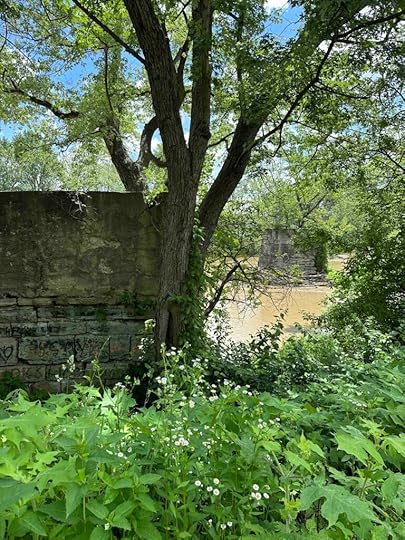 After enjoying the views at the memorial we continued on the main trail. The memorial gave one of the best views of the river as most of the rest of the trail had us looking through the trees and vegetation to see the river. And we did not find any spots to get down to the water. As we continued on the trail we passed an area with what appeared to be old bridge supports. Shortly after this we came upon Paradise Spring Historical Park.
