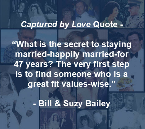 ���What is the secret to staying married���happily married���for 47 years? The very first step is to find someone who is a great fit values-wise.��� ��� Bill & Suzy Bailey