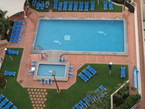 This is the view of the hotel pool from our balcony. We were in the pool and hot tub about three times a day and even at night.