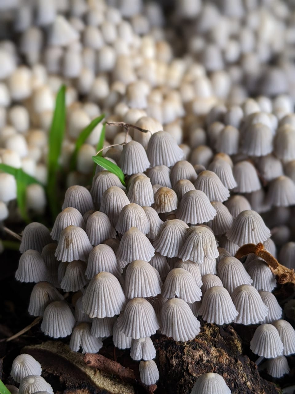 These are fairy inkcap mushrooms (coprinellus disseminatus) growing in the Panama Sierras. They aren't toxic but are seldom eaten because they have no particular taste or flavor.