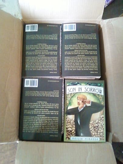 Crappy cellphone picture, but you get the idea! Somehow, my 11-year-old lugged these three boxes (2 filled with Son in Sorrow, the other filled with Lovers and Beloveds for those who got the 2-book set) into the house.
