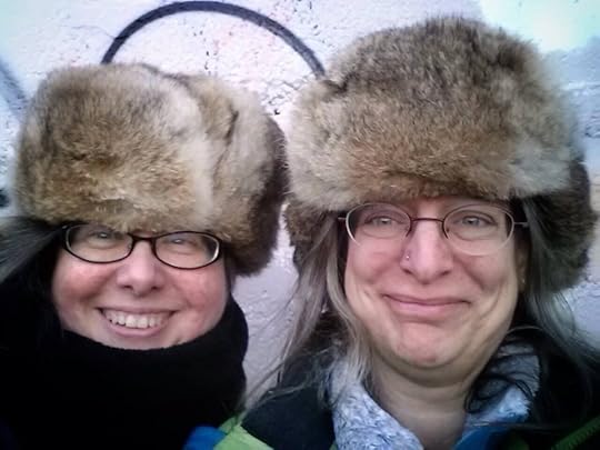 So I broke out the bunny hat! This is me (on the left)and my fellow bunny-wearing friend Ima. We are the Bunny Hat Gang. Hand over the chai and no one gets hurt!