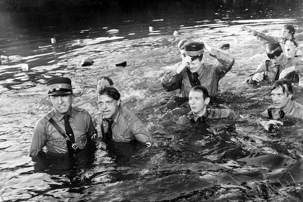 The Blues Brothers throw a group of Nazi off a bridge in the 1980 movie.Surprisingly, contemporary society seems to have a Nazi problem. I say surprisingly because you would think that, after World War II and the Holocaust, we would be done with that particular pernicious ideology. But, apparently, we are not.