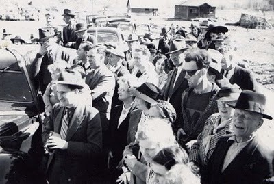 This photo was floating around a few months back, but I'm finally getting around to posting it here. It was apparently taken in 1940/41 at the reopening of a bridge in British Columbia, but amusingly it has gained some recent attention due to the individual standing right of center, whose choice of fashion seems strangely out of place. Time travel, of course, being the most obvious explanation.
